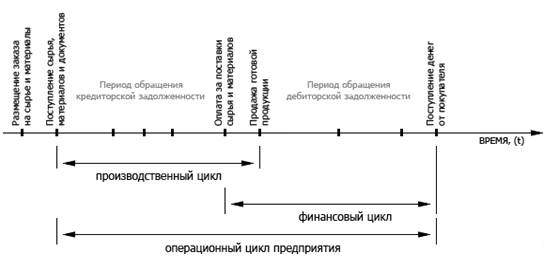 Важнейшей характеристикой операционного цикла является его продолжительность - период с момента закупки сырья до инкассации дебиторской задолженности.