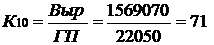 где Выр - выручка от продажи продукции, товаров, работ, услуг (ф.№2 Стр.010), тыс. руб.;