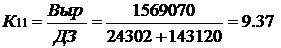 ) Коэффициент оборачиваемости дебиторской задолженности (К11)
