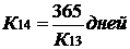 ) Средний срок оборота общей задолженности (К14) рассчитывается по формуле: