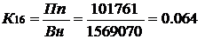 ) Коэффициент рентабельности (К16) рассчитывается по