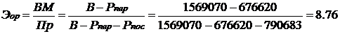 где ВМ - валовая маржа, как разница между выручкой от реализации продукции (В) и переменными расходами (Рпер), тыс. руб.;