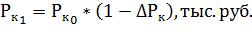, Рк1 = 57679 * (1- 0.06) = 54218.26 тыс. руб.