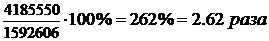 Сумма увеличения =Вырн - Выро = 4185550-1592606 = 2592944 тыс. руб.