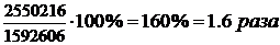 Сумма увеличения =Вырн - Выро = 2550216 - 1592606 = 957610 тыс. руб.