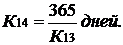 ) Средний срок оборота общей задолженности (К14) рассчитывается по формуле: