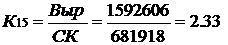 15) Коэффициент оборачиваемости собственных средств (К15) рассчитывается по формуле: