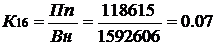 ) Коэффициент рентабельности (К16) рассчитывается по формуле: