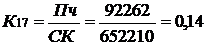 Нормативное значение К17 ≥ 0,1. Т.е. 0,14 ≥0.1 совпадает с нормативным значением.