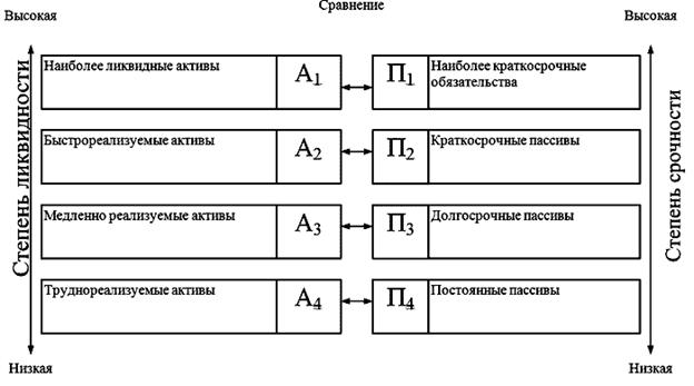 Рис.1.- Сравнение активов и пассивов по степени ликвидности и срочности погашения обязательств