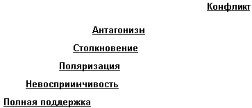 полной поддержки к пику разногласий - антагонизму реализуется, обычно,