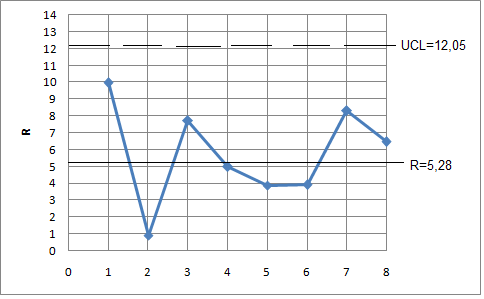 Далее контрольные карты используются для контроля хода процесса сравнением данных наблюдений и рассчитанными границами.