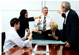 · внутригрупповой конфликт - между соперничающими сотрудниками внутри подразделения или между руководителями подразделений по вопросу "Кто важнее в иерархии отдела или предприятия?". Здесь часто возникают смешанные мотивации, связанные с амбициями, карьерными целями;