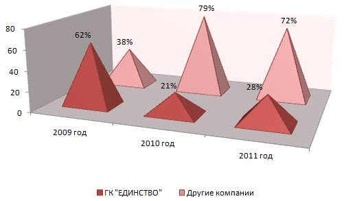 Рисунок 3 - Доля ГК "ЕДИНСТВО" в городе Рязани по объемам