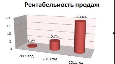 Как видно на графике, рентабельность продаж стабильно растет из года в