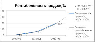 Рисунок 15 - Построение линии тренда по данным рентабельности продаж за