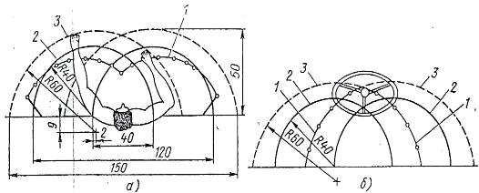 серединой плеча водителя: 1 - дуга, радиус которой соответствует оптимальному
