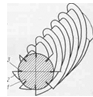 Ножевой вал представляет собой стальной сплошной цилиндр, установленный на подшипниках качения или скольжения. На поверхности цилиндра профрезерованы винтовые канавки прямоугольного сечения, в левой половине - правого направления, а в правой половине - левого. В винтовых канавках зачеканены мягким металлом (как правило, красной медью с лицевой стороны) спиральные ножи из металлической ленты (рис. 1.1). На стыках посередине вала ножи скругляют. Собранные валы тщательно балансируют.