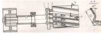 Ножевой вал стригальной машины (рис. 1.7)-это сплошной стальной цилиндр с дисками на концах. Ножи имеют фасонный профиль в виде уголка и изготавливаются из двухслойной стали сечением 35x2 мм. Основной слой - это малоуглеродистая мягкая сталь, хорошо сопротивляющаяся ударным нагрузкам, рабочий слой - легированная инструментальная сталь, которая после закалки становится достаточно твердой и износостойкой. На режущей грани ножа нанесена насечка глубиной 0,3 и с шагом 1,25 мм, препятствующая соскальзыванию волоса с лезвия ножа.