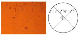 С помощью винтов 5 и 6 (рис 3.1) осуществляется наводка на резкость. Далее совмещая перекрестие микроскопа считываем толщину со шкалы (сотни мкм) и лимба (десятки и единицы мкм) 10 микроскопа.
