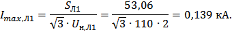 проходит проверку по нагреву, принимаем его для линии Л1.