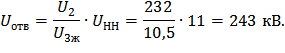 Напряжение на стороне НН, приведённое к обмотке ВН, кВ |