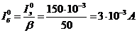 - статический коэффициент передачи тока в схеме с общим эмиттером β=50;