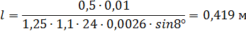 Длина плиты l = 0,419 м найдено из условия обеспечения зон уплотнения грунта.
