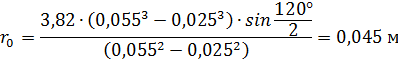 Угол φ0 по рекомендациям назначается 120˚. Радиус Rв предварительно определяется