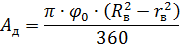 Неуравновешенные части дебалансов в сечении имеют форму кругового сектора. Значение r0 (расстояние от оси вращения до центра тяжести дебаланса) зависит от угла сектора φ0 внешнего Rв и внутреннего rв радиусов дебаланса.