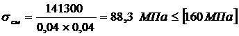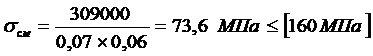 допускаемые напряжения смятия, =160 МПа.