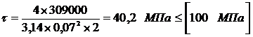 - допускаемые напряжения среза, [τ] =100 МПа.