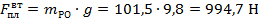 гдеFпл -сила подъема-прижатия действующая на шток со стороны виброплиты, Н ;