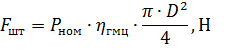 Усилие на штоке гидроцилиндра: