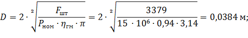 Отсюда диаметр поршня: