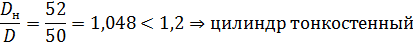 минимальную толщину тонкостенного гидроцилиндра (проверка):