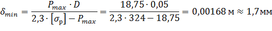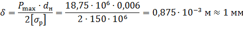 определим толщину его стенки из условия прочности: