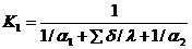 К1 = 1 / (1/α1 + ∑δ/λ + 1/α2)