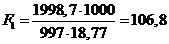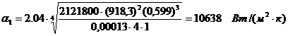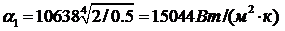 К1 = 1/ (1/11249 + 0,000287 + 1/1594) = 997 Вт/ м2∙К