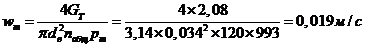 Скорость в штуцерах: dт.ш= 0,065