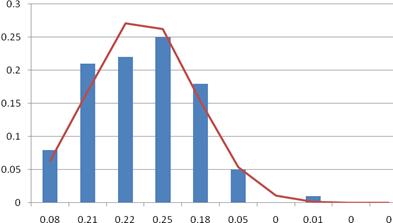 Г(244.64;0.089) с плотностью распределения вероятностей: