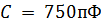 последовательно два конденсатора номиналом 750 пФ.