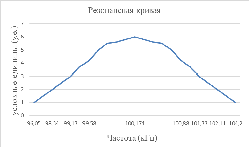 График резонансной кривой на выходе УРЧ представлен на рис. 7, а в табл. 1 представлена зависимость