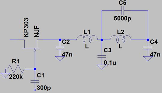 радиочастот. После анализа схем усилителей была выбрана схема на полевом