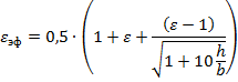 ɛэф зависит от волнового сопротивления линии W, которое зависит от ширины полоска b и параметров диэлектрика h и ɛ.