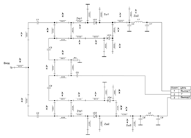 Схема выполнена на МПЛ и состоит из делителя мощности, квадратурных направленных ответвителей и шлейфов короткозамкнутых и разомкнутых для компенсации реактивных составляющих диодов.