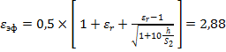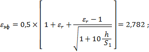 При большой величине ɛ, бόльшая часть энергии поля сосредоточена в подложке. Однако, часть её находится также в пространстве над подложкой и верхней полоской проводника, что эквивалентно уменьшению диэлектрической проницаемости среды в МПЛ, по сравнению с величиной ɛ подложки. Поэтому, чтобы охарактеризовать диэлектрическую проницаемость среды в конкретной линии, используют параметр ɛэф - эффективная диэлектрическая проницаемость среды в линии (ɛэф<ɛ).