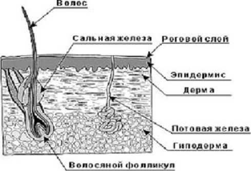 включающего также 5 слоев и внутреннего слоя (дермы), в котором располагаются