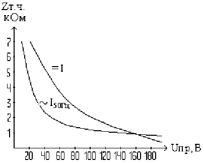 . Вид тока - при величине подаваемого напряжения до 300В постоянный ток менее опасен, его предельное допустимое значение в 3-4 раза выше, чем у переменного тока. При более высоком напряжении постоянный ток более опасен.