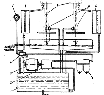 - бак для газойля; 2 - топливоподкачивающий